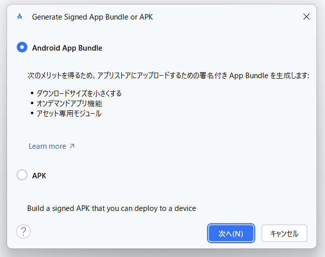 2.[Android App Bundle] を選択して [Next] をクリックします。