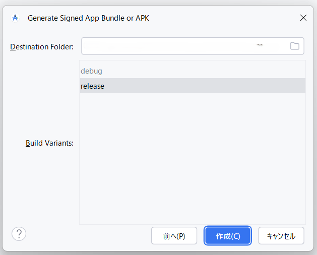 アプリのビルド設定で、リリース用のAABファイルを生成する