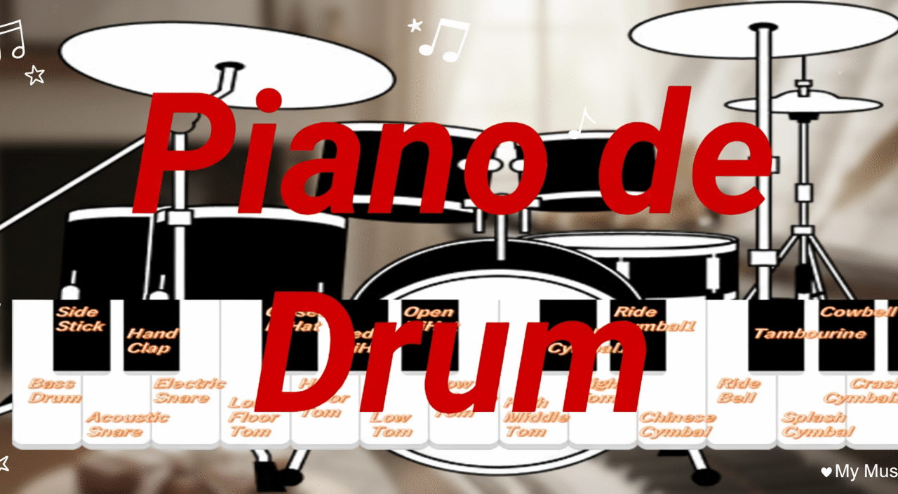 ピアノの鍵盤にドラムセットのパーツを配置しました。